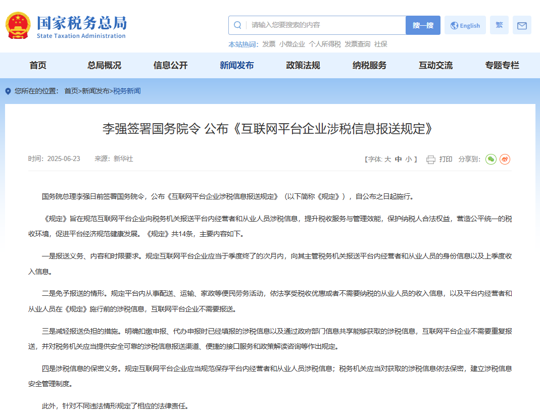 《互聯(lián)網(wǎng)平臺企業(yè)涉稅信息報送規(guī)定》核心要點解讀與企業(yè)應對之道